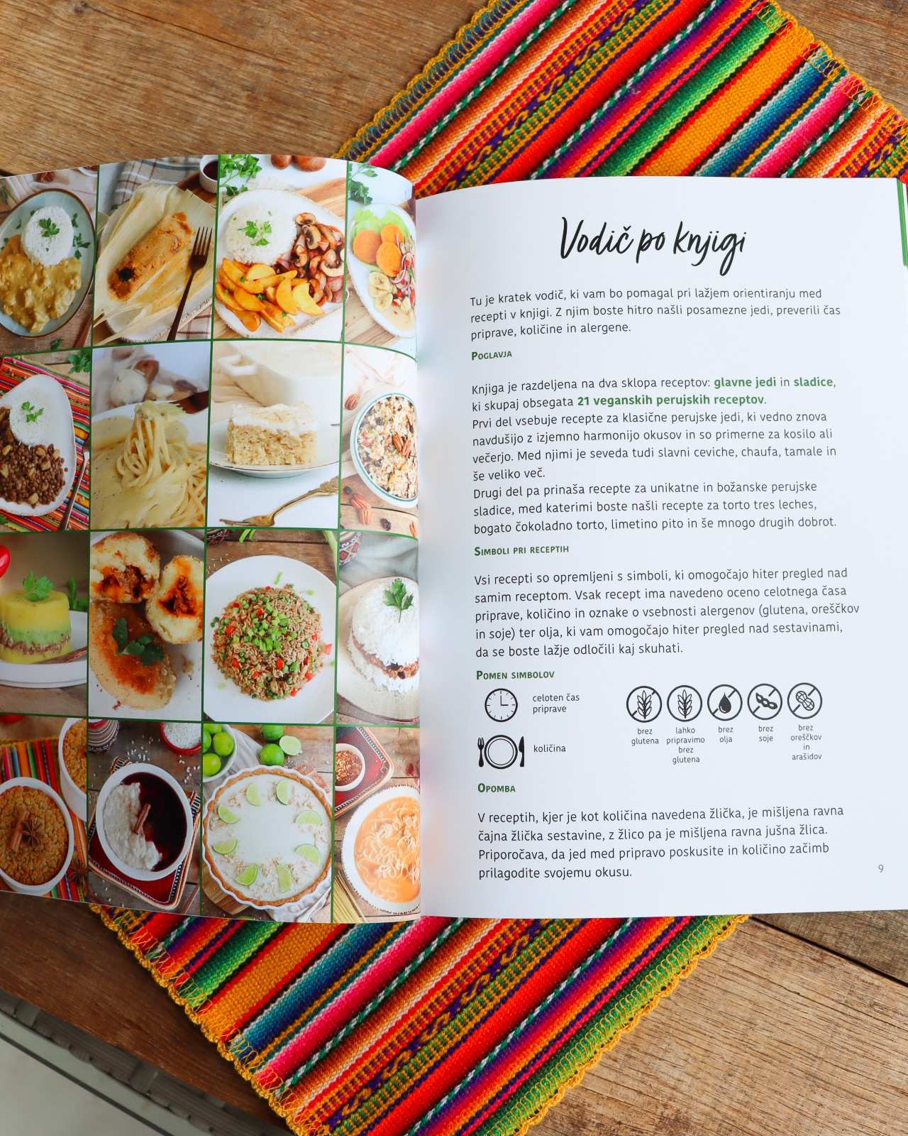 V knjigi boste našli recepte za tradicionalno navdihnjene glavne jedi in sladice, ki združujejo značilne perujske sestavine, barve in okuse. Vsak recept je opremljen s čudovitimi celostranskimi fotografijami, malce bolj zahtevni pa tudi s fotografijami postopka. Vsi recepti so veganski, večina receptov je lahko pripravljena tudi brez glutena, vsi alergeni pa so pri receptih jasno označeni.